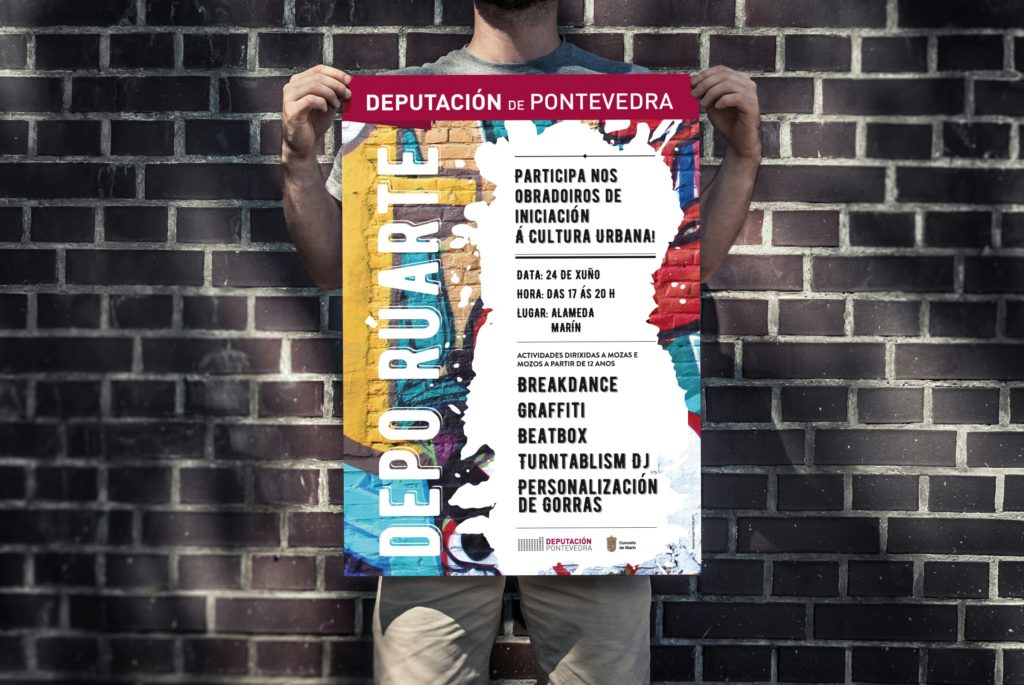 O sábado 24 de Xuño chega a Marín a segunda entrega do programa da Depuración de Pontevedra DepoRúarte, con obradoiros de Cultura Urbana impartidos por Vella Escola. Esperámoste a partir das 17:00 na Alameda con obradoiros e mostras de Breakdance, Beatbox, Dj, Graffiti, Turntablism e Personalización de Gorras Trucker.