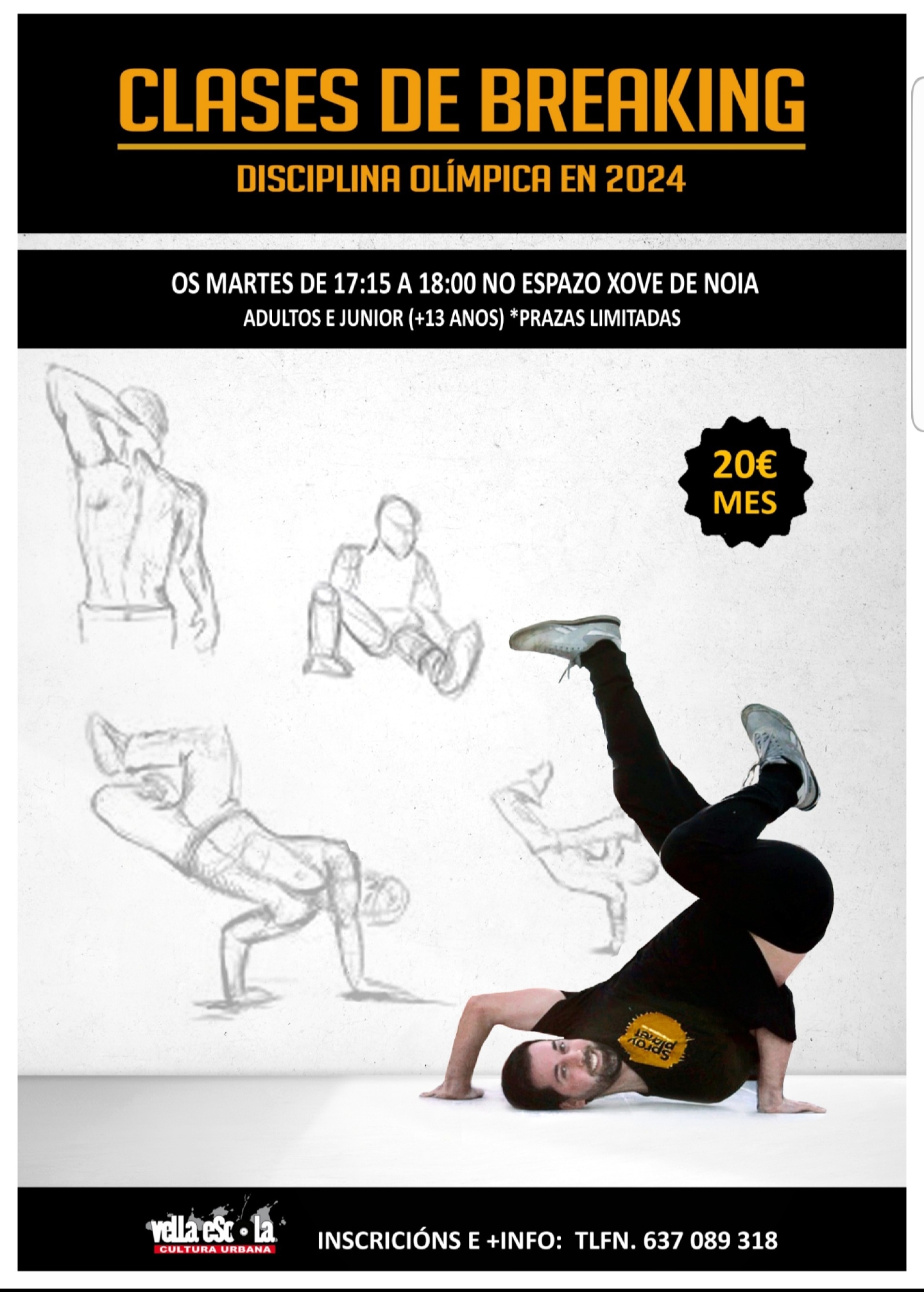 Xa temos CLASES DE BREAKING en Noia a cargo da Vella Escola os martes de 17:15 a 18:00 horas no Espazo Xove (Casa da Xuventude).