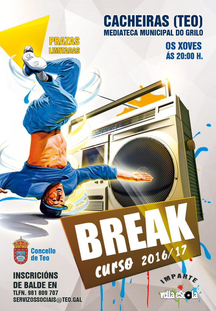 CURSO DE BREAKDANCE en Cacheiras (Teo) os xoves ás 20:00 con Vella Escola na Mediateca Municipal do Grilo.