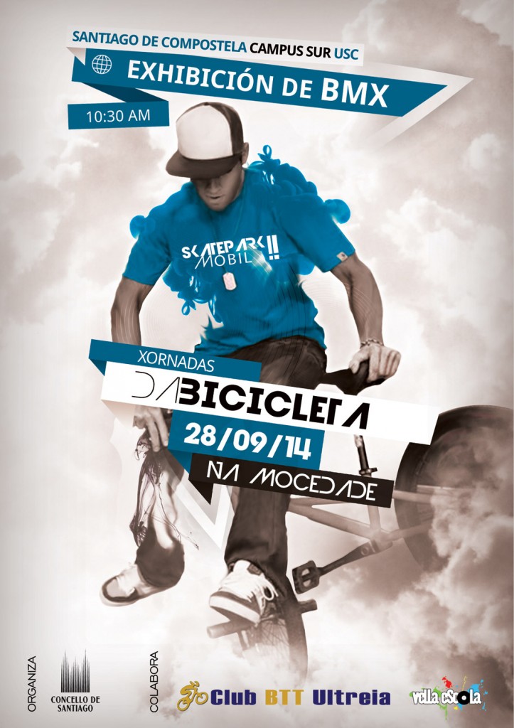 Exhibición de BMX a cargo de Vella Escola no Campus Sur da USC en Santiago de Compostela este domingo día 28 ás 10:30 AM. Esta actividade está enmarcada no programa «Xornadas da Bicicleta na Mocedade» organizada polo Concello de Santiago de Compostela coa colaboración do Club BTT Ultreia.
