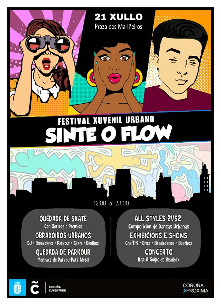 O venres 21 de Xullo chega a Concello da Coruña (Praza dos Mariñeiros) o Festival Sinte o Flow con exhibicións, torneos, concertos e obradoiros de Cultura Urbana impartidos por Vella Escola. ACHÉGATE E PARTICIPA!!!