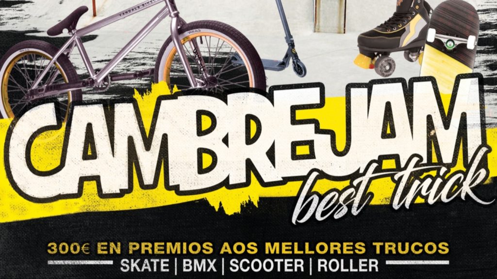 Este ano os da Vella Escola producimos un dos mellores eventos sobre rodas de Galicia, o «Cambre Jam» que terá lugar o 27 de Xuño no SkatePark de Cambre, e o facemos cun novo formato que repartirá ata 300€ en premios aos mellores trucos (Best Trick) de BMX, Skate, Scooter e Roller.