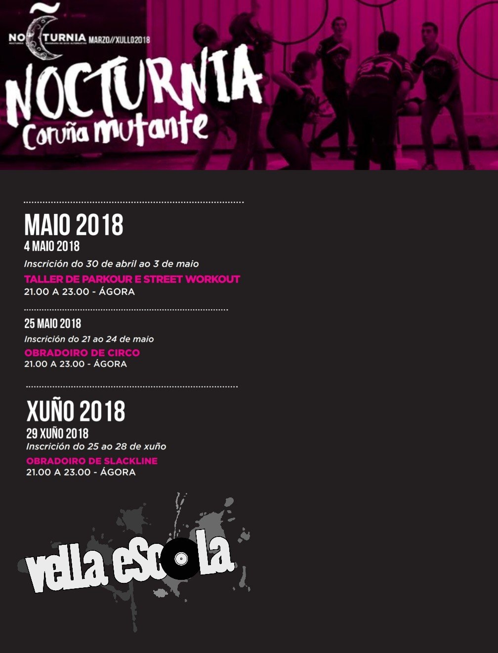 Xa temos as datas dos vindeiros obradoiros de Parkour, Street Workout, Circo e Slackline que impartiremos os da Vella Escola durante os meses de Maio e Xuño en A Coruña dentro do programa Nocturnia!!!