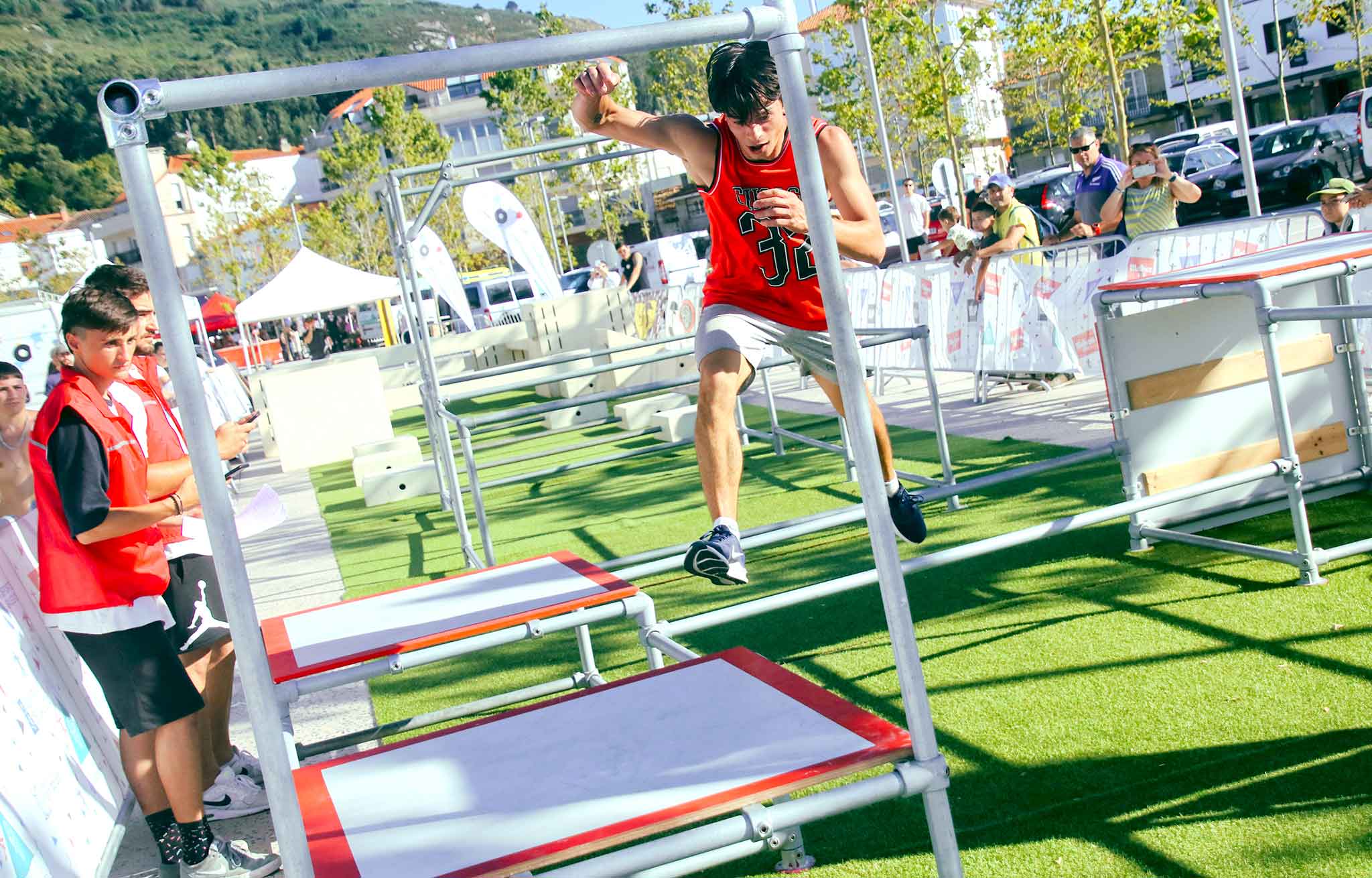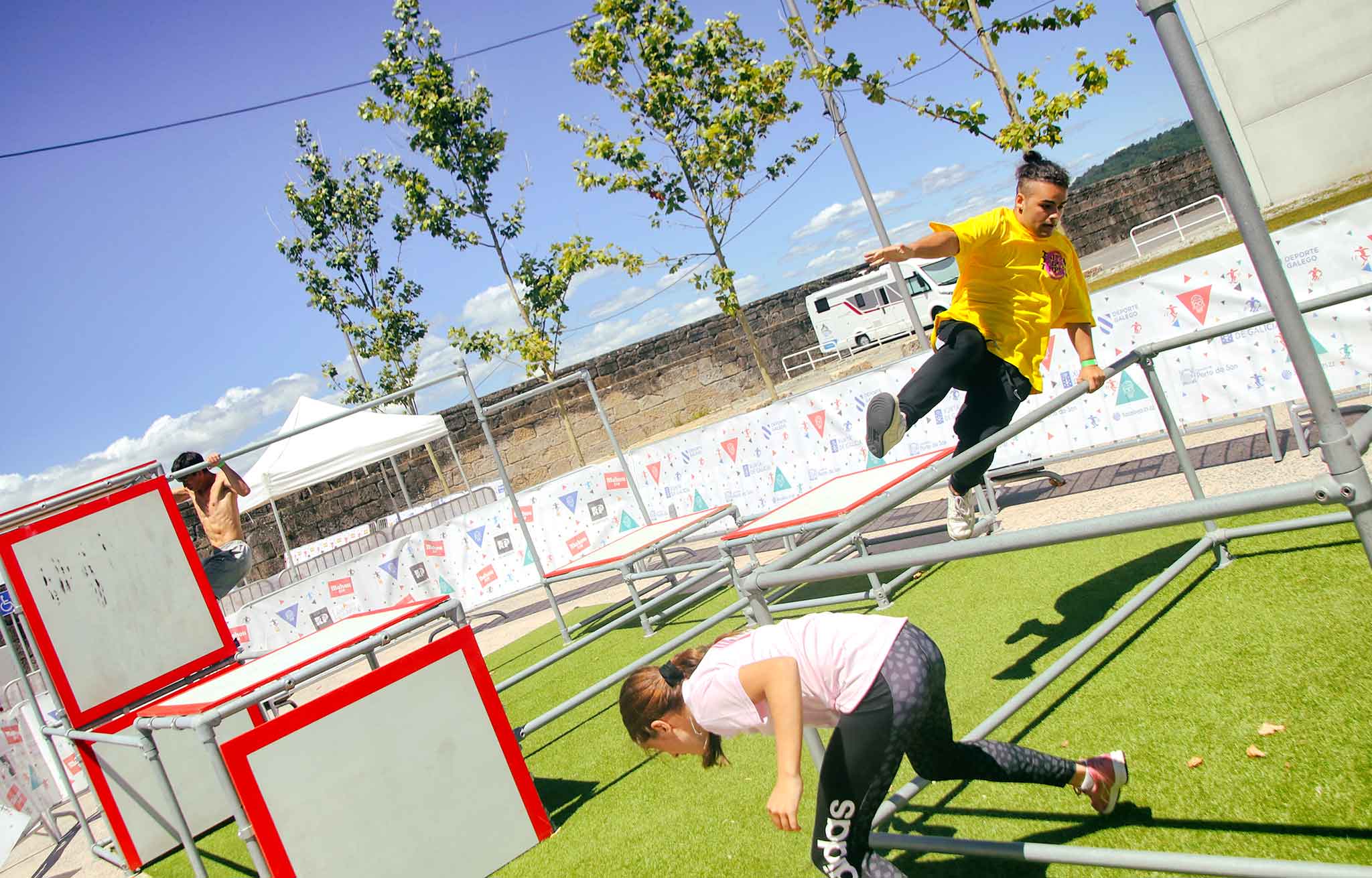 Parque polivalente diseñado para múltiples usos y optimizado para deportes urbanos como el parkour, el street workout o el chase tag (pilla-pilla). El parque consta de una estructura de acero galvanizado y contrachapado fenólico de alta densidad de 12 mm, que se instala sobre tubos de acero de 42 mm de diámetro y 2,6 mm de espesor, formando por soleras y paredes verticales. El parque es completamente estable y seguro, soporta cargas de más de 300 kg y está instalado sobre una superficie de césped artificial antideslizante.