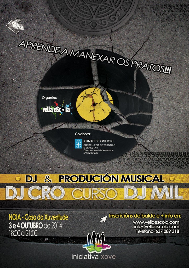 Vella Escola presenta os días 3 e 4 de outubro en Noia o novo curso de DJ e Produción Musical «Aprende a Manexar os Pratos» impartido por DJ CRO e DJ MIL.
